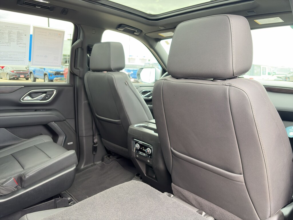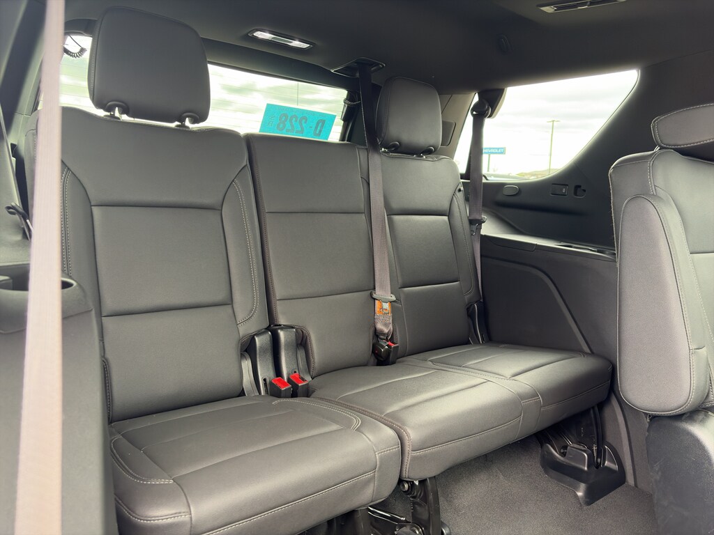 Driver Alert Package: Rear Cross Traffic Alert; Lane Change Alert with Side Blind Zone Alert. Luxury Package: HD Surround Vision; Heated 2nd Row Outboard Seats; 2nd Row Power Release 60/40 Split-Folding Bench Seat; Memory Settings; Power Tilt and Telescopic Steering Column; Rear Pedestrian Alert; Heated Steering Wheel; 3rd Row 60/40 Power-Folding Split-Bench Seat; Outside Heated Power-Adjustable Mirrors. Preferred Equipment Group 1LT: Bright Front and Rear Door Sill Plates; Hands-Free Rear Power Programmable Liftgate; Chevrolet Infotainment 3 Premium System Radio; Bose 9-Speaker Stereo Audio System Feature; Leather-Appointed Seat Trim; 1st and 2nd Row Color-Keyed Carpeted Floor Mats; Remote Start; Enhanced Driver Information Center; Floor Console with Storage Area; SiriusXM Radio with 360L; Wrapped Steering Wheel; LED Daytime Running Lamps; Infotainment Display; Driver and Front Outboard Passenger Airbags; Auto-Dimming Inside Rearview Mirror; Memory Settings For Driver; Wireless Charging; Front High-Back Reclining Bucket Seats; Universal Home Remote; Color-Keyed Carpeting Floor Covering. 22" X 9" Polished Aluminum Wheels. Dual-Pane Power Panoramic Sunroof. Power Release 2nd Row Bucket Seats. Set of 4 Wheel Locks. **Equipment listed is based on original vehicle build and subject to change. Please confirm the accuracy of the included equipment by calling the dealer prior to purchase.**
