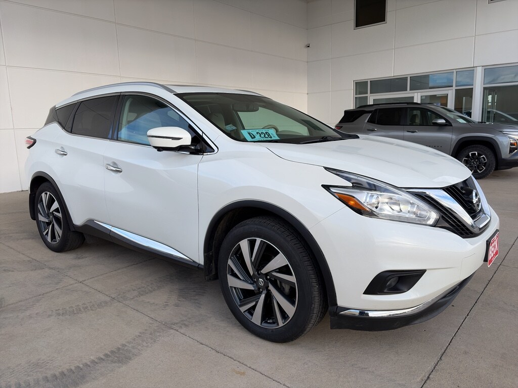 This premium 2016 Nissan Murano Platinum combines comfort, capability and style with a powerful 3.5L V6 and responsive 4WD perfect for South Dakota roads and seasonal weather. Located in Pierre, SD, this Nissan Murano offers a refined interior, advanced safety technology and a confident driving experience at the best price in the area.