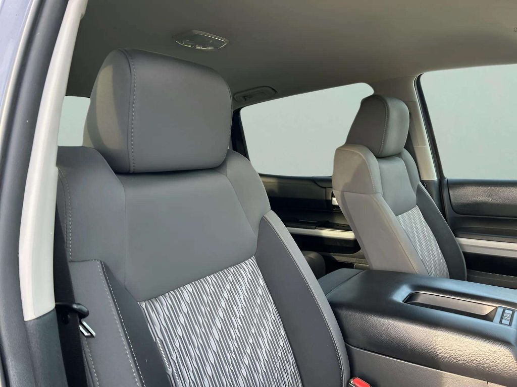 This has been the best truck I have ever driven. 2021 Toyota Tundra SR5 Crew Cab ( Trail Edition package) color is Army Green. The suspension comfortably dampens most bumps and pot holes. The 4 wheel drive works great in the snow. The steering is very lite and easy to turn. In tow/haul, The 5.7L and 6 speed trans pulls my 6000lb trailer with ease. It has a tight turning radius, so backing up my trailer is easy. The interior controls are all easy to reach and intuitive to use. The seats are cloth and comfortable. The interior room in my crew cab is massive. The back seats fold flat to the back wall, leaving a lot of room for hauling things out of the weather. The bed is 5’5” with a dampened tailgate . I have easily hauled plywood and lumber with the tailgate down. I also haul kayaks sticking out out of the bed without a problem. My truck has Toyota safety sense, with that is all of the modern safety features you can imagine. All features, gages and controls are working perfectly. The engine is powerful with some if that V8 engine tone in the cabin. I get an average fuel economy of 15mpg as my daily driver. I also got 18.2 mpg average on a mostly highway trip. I do notice a little body roll/lean when taking turns fast. The halogen headlights and fog lights are good. My truck is stock from Toyota, no changes or additions. This make and model year has impeccable reliability. - 4.0